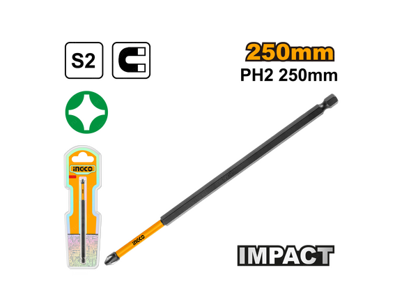 Бита ударная INGCO INDUSTRIAL PH2*250мм, IMPACT, 1шт блистер (50/200)