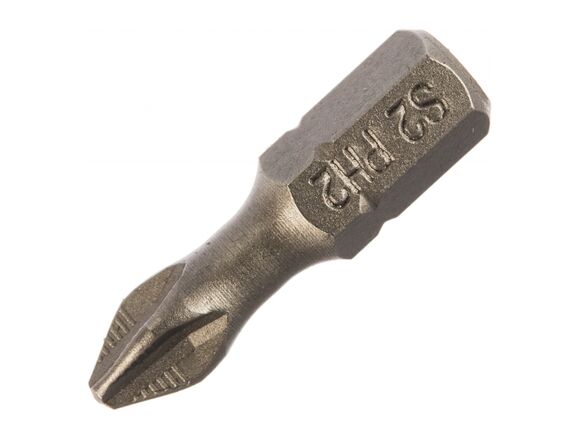 Изготовлена из стабильной стали марки S2, которая проходит все этапы закалки согласно стандарту AISI. Твёрдость после закалки до 64 HRC. Оснащена суженной шейкой, которая позволяет бите немного скручиваться и пружинить обратно, ликвидируя пики нагрузок, за счет чего продлевается срок службы. Бита намагничена.