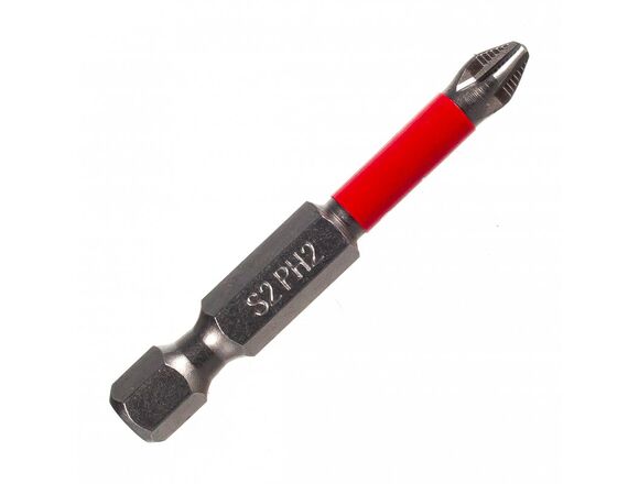 Изготовлена из стабильной стали марки S2, которая проходит все этапы закалки согласно стандарту AISI. Твёрдость после закалки до 64 HRC. Оснащена суженной шейкой, которая позволяет бите немного скручиваться и пружинить обратно, ликвидируя пики нагрузок, за счет чего продлевается срок службы. Бита намагничена.