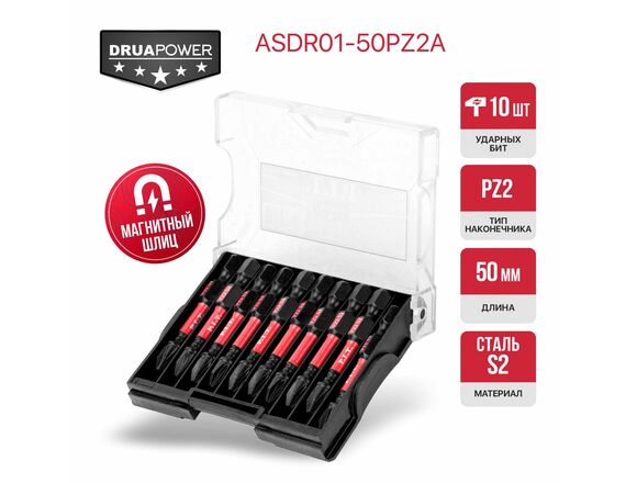 Бита ударная магнитная P.I.T. DRUA PZ2x50 мм, IMPACT, торсионная зона, 10 шт, кейс (A