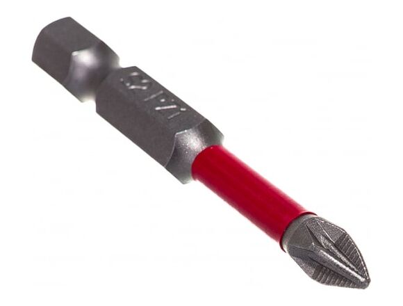 Изготовлена из стабильной стали марки S2, которая проходит все этапы закалки согласно стандарту AISI. Твёрдость после закалки до 64 HRC. Оснащена суженной шейкой, которая позволяет бите немного скручиваться и пружинить обратно, ликвидируя пики нагрузок, за счет чего продлевается срок службы. Бита намагничена.