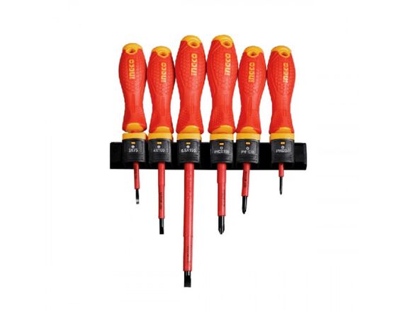Набор отверток диэлектрических INGCO INDUSTRIAL 1000В, 6шт + держатель (24/240)