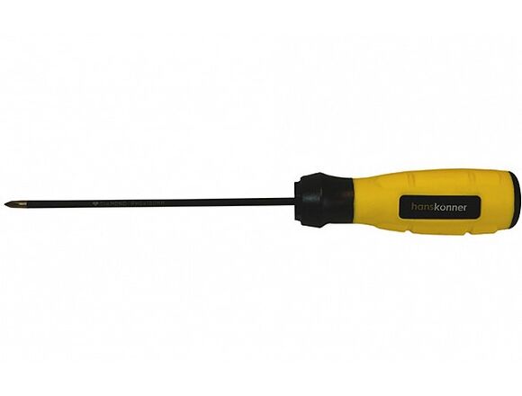Крестовая отвертка Hanskonner 1x200 алмазный наконечник, твердость 59 HRC, S2, HK1040-16-PH1-200 подходит для работы со сложным и прочным крепежом. Инструмент оснащен нестираемым наконечником, поэтому можно прикладывать больше усилий.