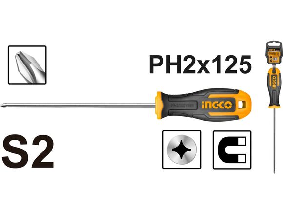 Отвертка крестовая INGCO INDUSTRIAL PH2*125мм NEW (12/144)