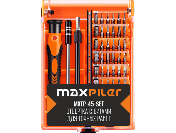 Набор бит и головок для точных работ с рукояткой MAXPILER (45 шт, 2 адаптера, кейс) (1/36)