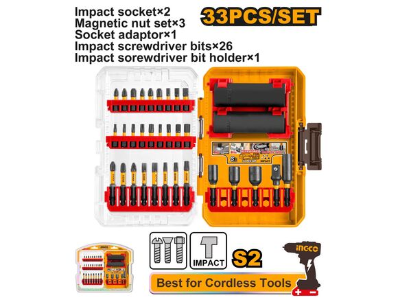 Набор бит ударных INGCO 33шт, биты/головки/насадки, КЕЙС (12/60)