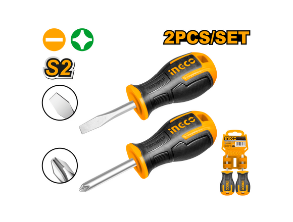 Набор отверток INGCO INDUSTRIAL 2шт* 38мм (PH2+SL6.5), сталь S2 (12/72)