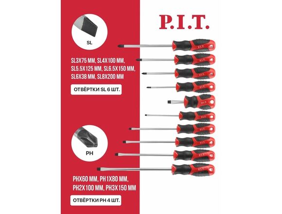 Набор отверток P.I.T. ADVANCE 10шт, Cr-V, PH0-PH3 с магнитным наконечником