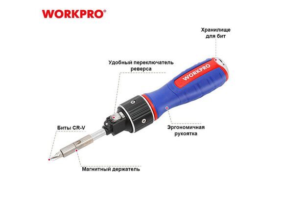 Отвертка с набором бит WORKPRO 6 шт. двойной привод (1/8)