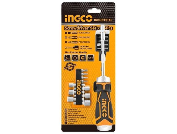 Отвертка с насадок INGCO INDUSTRIAL 15 шт