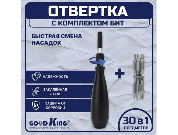 Отвертка с прецензионными битами GOODKING 30 в 1 (отвертка/биты/удлинитель), цельнометалл