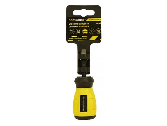 Шлицевая отвертка Hanskonner 6x38 алмазный наконечник, твердость 59 HRC, S2, HK1040-16-SL6-38 подходит для работы со сложным и прочным крепежом. Инструмент оснащен нестираемым наконечником, поэтому можно прикладывать больше усилий.