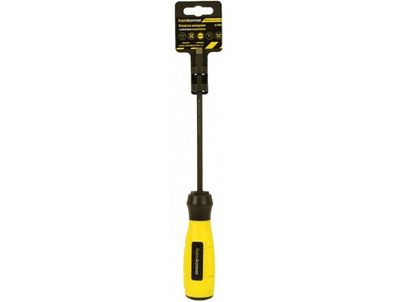 Шлицевая отвертка Hanskonner 6x150 алмазный наконечник, твердость 59 HRC, S2, HK1040-16-SL6-150 подходит для работы со сложным и прочным крепежом. Инструмент оснащен нестираемым наконечником, поэтому можно прикладывать больше усилий.