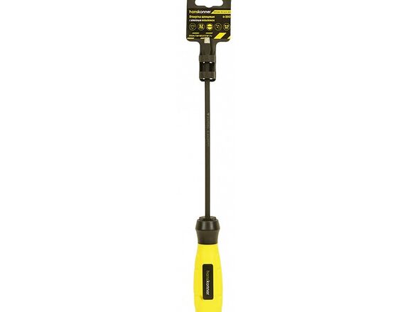 Шлицевая отвертка Hanskonner 6x200 алмазный наконечник, твердость 59 HRC, S2, HK1040-16-SL6-200 подходит для работы со сложным и прочным крепежом. Инструмент оснащен нестираемым наконечником, поэтому можно прикладывать больше усилий.