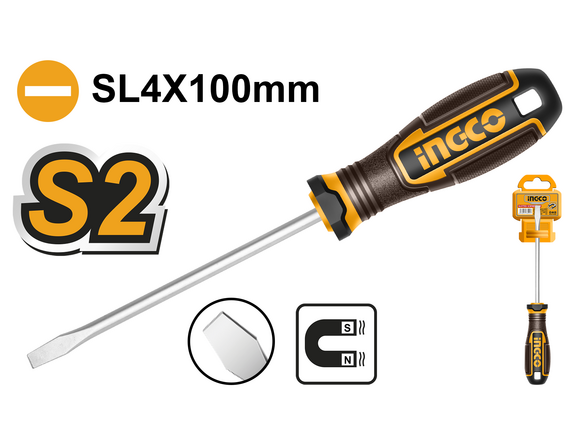 Отвертка шлицевая INGCO INDUSTRIAL SL4*100мм NEW (12/144)