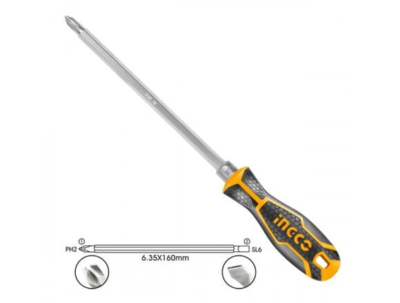 Отвертка INGCO двухсторонняя PH2/SL6*160мм, ручка 2К (12/144)