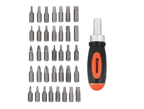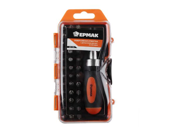 Отвертка с трещоткой ЕРМАК + 37 насадок в КЕЙСЕ