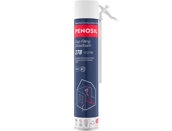 Penosil Gap Filling Strawfoam 278 - это пенный герметик с трубочкой-аппликатором для заполнения и герметизации крупных отверстий.
