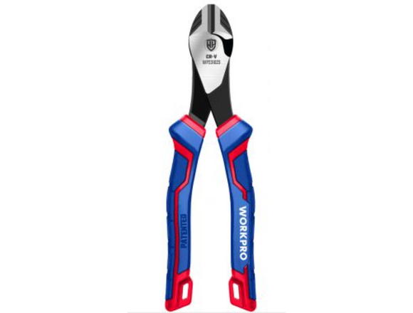 Усиленные бокорезы WORKPRO 180 мм (7 дюймов) CR-V WP231023Антискользящие трехцветные рукояткиДополнительное удобство в работе за счет увеличения ширины рукояток на 30%Смещенный центр снижает затраты труда на 35%!Съемник проволокиИзготовлены из кованой хромованадиевой сталиЗакаленная режущая кромка