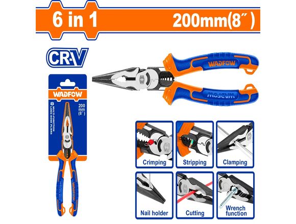 Тонкогубцы WADFOW 200 мм 6 в 1 многофункциональные (1/36)