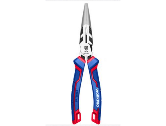 Длинногубцы WORKPRO 200 мм, 8 дюймов, CR-V WP231021 используются для различных монтажных, ремонтных и слесарных работ. Эргономичные трехкомпонентные рукоятки обеспечивают надежный хват и не скользят в руках. Инструмент изготовлен из кованой хромованадиевой стали. Материал отличается высокой прочностью и долговечностью. Инструмент можно использовать как съемник проволоки, а также для вытягивания кабеля.