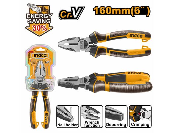 Плоскогубцы INGCO INDUSTRIAL 160мм +30% к силе комбинированные (12/36/180)