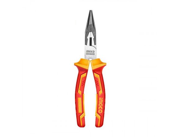 Длинногубцы диэлектрические изогнутые 200 мм INGCO HIBNP28208 INDUSTRIAL специализированный ручной инструмент, предназначенный для работы под высоким напряжением до 1000 В переменного тока. Применяются в качестве ручного инструмента при проведении слесарных, ремонтных и других видов работ, с целью удержания или выгибания деталей.Губки имеют удлиненную загнутую конструкцию. Представляют собой прочный и удобный для использования в труднодоступных местах. Режущие кромки предназначены для перекусывания проволоки, насечки на зажимной части обеспечивают надежный захват мелких деталей.Длинногубцы диэлектрические изготовлен из стали Cr-V, потому что она обладает отличными свойствами, такими как жесткость, прочность, и устойчивость к износу и коррозии.Двухкомпонентные рифленые рукоятки плоскогубцев не скользят в руке, имеют диэлектрическое покрытие до 1000В.