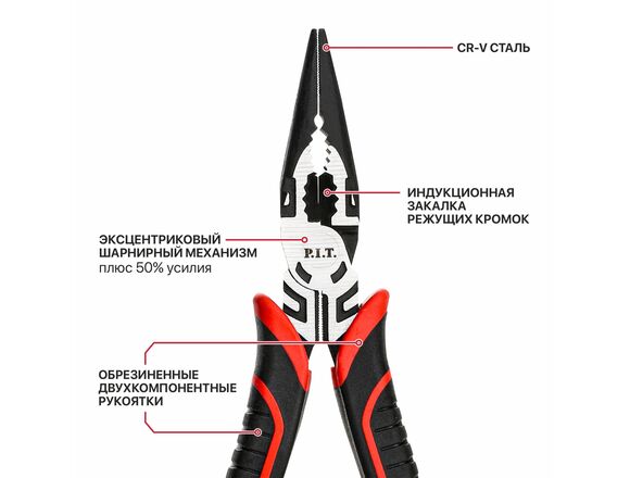 Тонкогубцы P.I.T.150мм прямые ручка 2К (1/84)