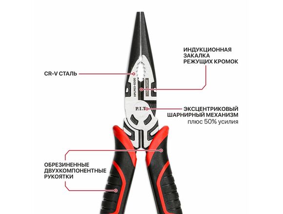 Тонкогубцы P.I.T.200мм прямые ручка 2К (1/48)