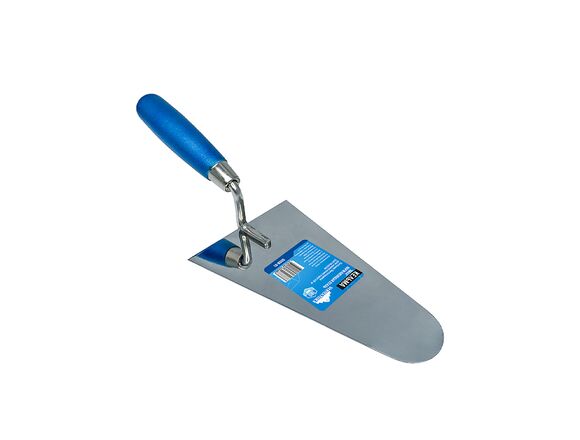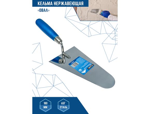 Полотно кельмы выполнено из высокопрочной инструментальной стали и имеет полукруглую форму.
