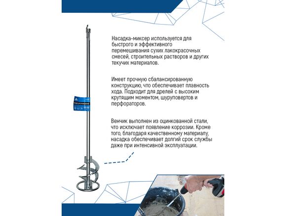 Миксер 60x400 мм, SDS-plus vertextools 0024-060 насадка для перемешивания по вертикали вверх с 2-мя рабочими лопастями. Подходит для специальных миксеров цементных и гипсовых растворов и плиточного клея.