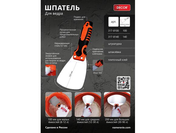 Шпатель ДЛЯ ВЕДРА, 140мм DECOR ПРОФИ, ручка 2К (24/120)