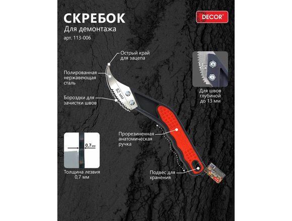 Скребок DECOR 0.7мм для демонтажа,заостренный (6шт/48шт/240шт)