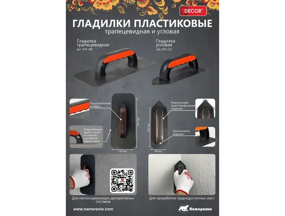 Гладилка DЕCOR пластиковая 222*84мм, УГЛОВАЯ (25/100)