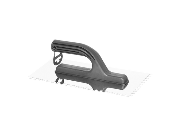 Гладилка нержавеющая ИНТЕК 130мм*270мм, зуб 6х6, пластиковая ручка (1/24)