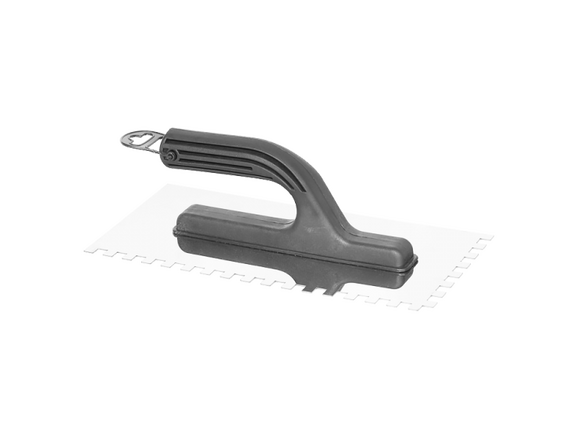 Гладилка нержавеющая ИНТЕК 130мм*270мм, зуб 8х8, пластиковая ручка (1/24)