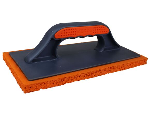 Терка для замывания затирок и глянцевания штукатурок DECOR 670-002 280x140 мм 11608274 используется для деликатного мытья плитки после укладки и размывания затирки. Применяется также для создания глянцевого эффекта у высохших декоративных штукатурок. Двухкомпонентная ручка с удобным хватом обеспечивает комфортное применение. Небольшой вес и продуманная конструкция терки позволяет работать продолжительное время без усталости.