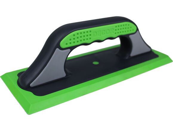 Терка DECOR 570-002 трехкомпонентная ручка, 260x100 мм, жесткая зеленая резина 11608214 используется для затирки плиточных швов. Резина влита в основание, что обеспечивает высокую прочность изделия. Материал устойчив к агрессивным составам и воздействию внешней среды. Благодаря увеличенной рабочей зоне, терка подходит для больших поверхностей. Резиновые вставки в рукоятке обеспечивают надежный хват и комфортное использование.