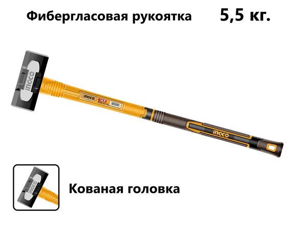 Кувалда INGCO INDUSTRIAL 5500гр, ручка 900мм, фибергласс NEW (1/4)
