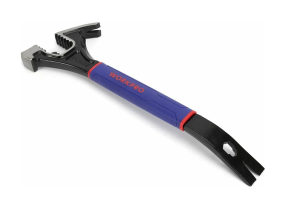 Монтировка-гвоздодер WORKPRO 450 мм WP245006 представляет собой универсальный инструмент для поддевания, раскалывания, гибки досок и ударных работ. Изделие имеет высокопрочную цельнокованую конструкцию из качественной закаленной стали. Это обеспечивает высокую надежность и долговечность. Инструмент имеет скошенный паз для вытаскивания гвоздей. Специальные челюсти обеспечивают удобный захват досок и пиломатериалов. Эргономичная двухкомпонентная рукоять снижает усталость рук при работе.