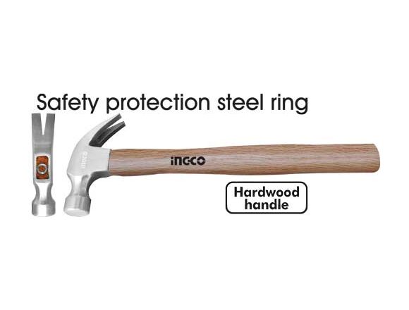 Молоток-гвоздодер INGCO 220гр, ручка ДЕРЕВО (6/36)