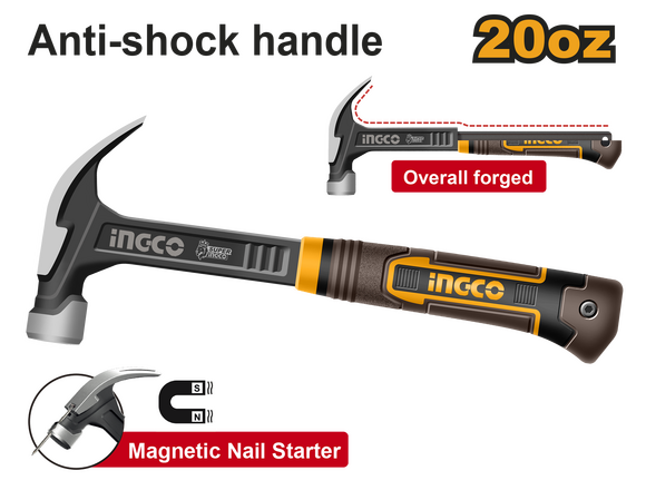 Молоток-гвоздодер INGCO INDUSTRIAL 560гр, ЦЕЛЬНОКОВАННЫЙ, NEW (6/18)