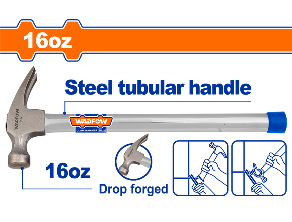 Молоток гвоздодер WADFOW 450гр Ручка стальная трубчатая (1/24)