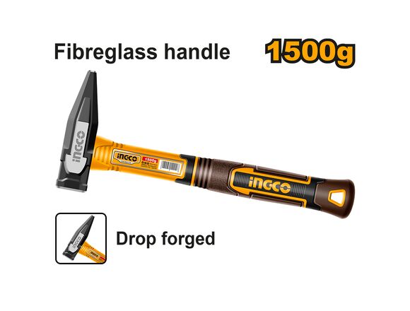 Молоток слесарный INGCO 1500гр, фибергласс NEW (6/12)