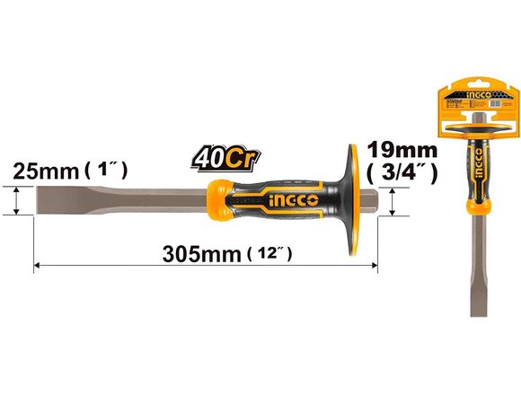 Зубило ручное плоское INGCO INDUSTRIAL 305*19*25мм, ПРОТЕКТОР + 2К ручка (6/24)