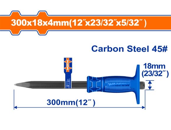 Зубило ручное WADFOW 4*18*300мм С ПРОТЕКТОРОМ (1/36)
