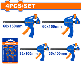 Набор струбцин быстрозажимных WADFOW 35*100/60*150мм 4 шт (1/12)