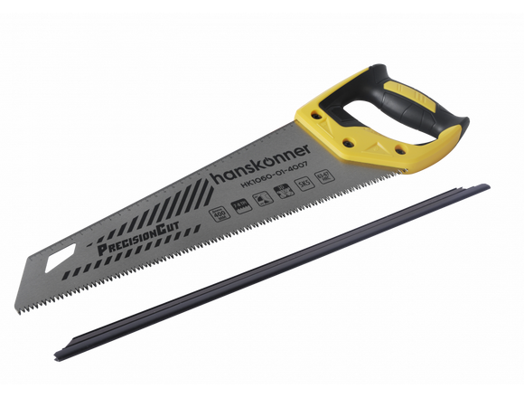 Ножовка по дереву Hanskonner HK1060-01-4007 используется для распила древесины. Полотно выполнено из качественной японской стали. Сталь SK5 держит заточку до 3 раз дольше обычной, а так же позволяет добиться на 15% большей закалки зубьев (63-67HRC) без потери прочности. Запатентованное покрытие LimpidShield - это прозрачное лакированное покрытие для улучшения скольжения при распиле и защиты от внешнего воздействия. Алмазная шлифовка рабочих кромок DiamondGrind позволяет точно соблюдать угол заточки, специально выверенный для сбалансированного распила. Рукоятка покрыта высококачественной термопластичной резиной для надёжного захвата и полного контроля инструмента. Выверенное разведение зубьев обеспечивает быстрое пиление и эффективное удаление стружки. Измерительная шкала на полотне и рукоятка с углами 90° и 45° служит для быстрого нанесения разметки. Протектор с магнитом используется для быстрой установки на полотно и эффективной защиты пользователя.