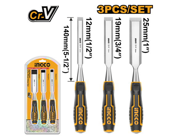 Набор стамесок ударных INGCO 3шт, 12/19/25мм (5/30)