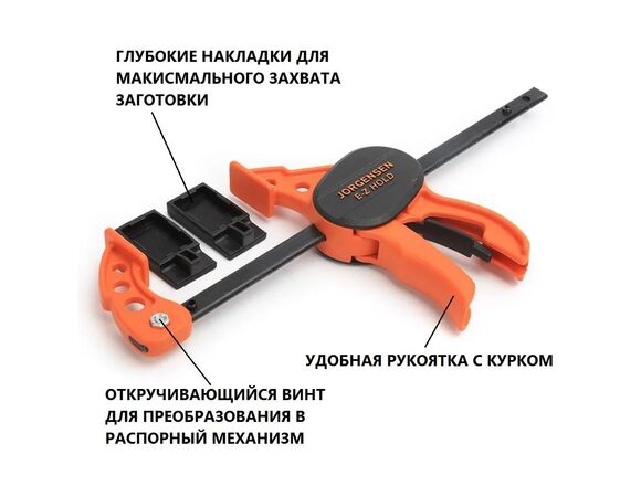 Струбцина быстрозажимная/распорная Jorgensen E-Z HOLD 100мм для хобби (до 22кг)